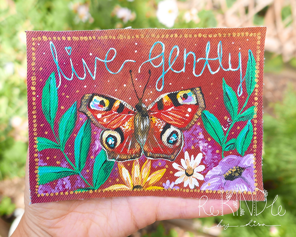 Hand-Painted 'Be Here Now' Denim Patch: Upcycled Eco Art